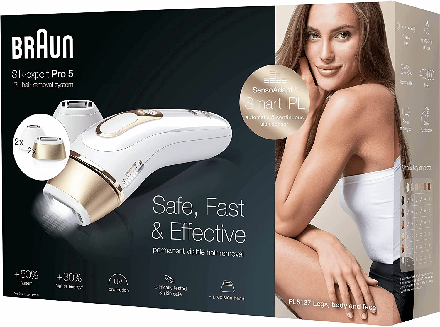 - Lámpara de larga duración: La lámpara de Braun Silk-expert Pro 5 ofrece hasta 400.000 disparos, garantizando una vida útil prolongada y evitando la necesidad de reemplazar las lámparas con frecuencia.