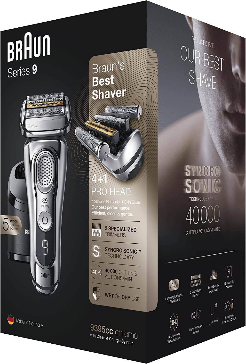 • Comodidad: El cabezal de afeitado flexible 10D se adapta a los contornos de tu cara y cuello, permitiendo un afeitado más cómodo y preciso en todas las áreas, incluso en las zonas difíciles de alcanzar.